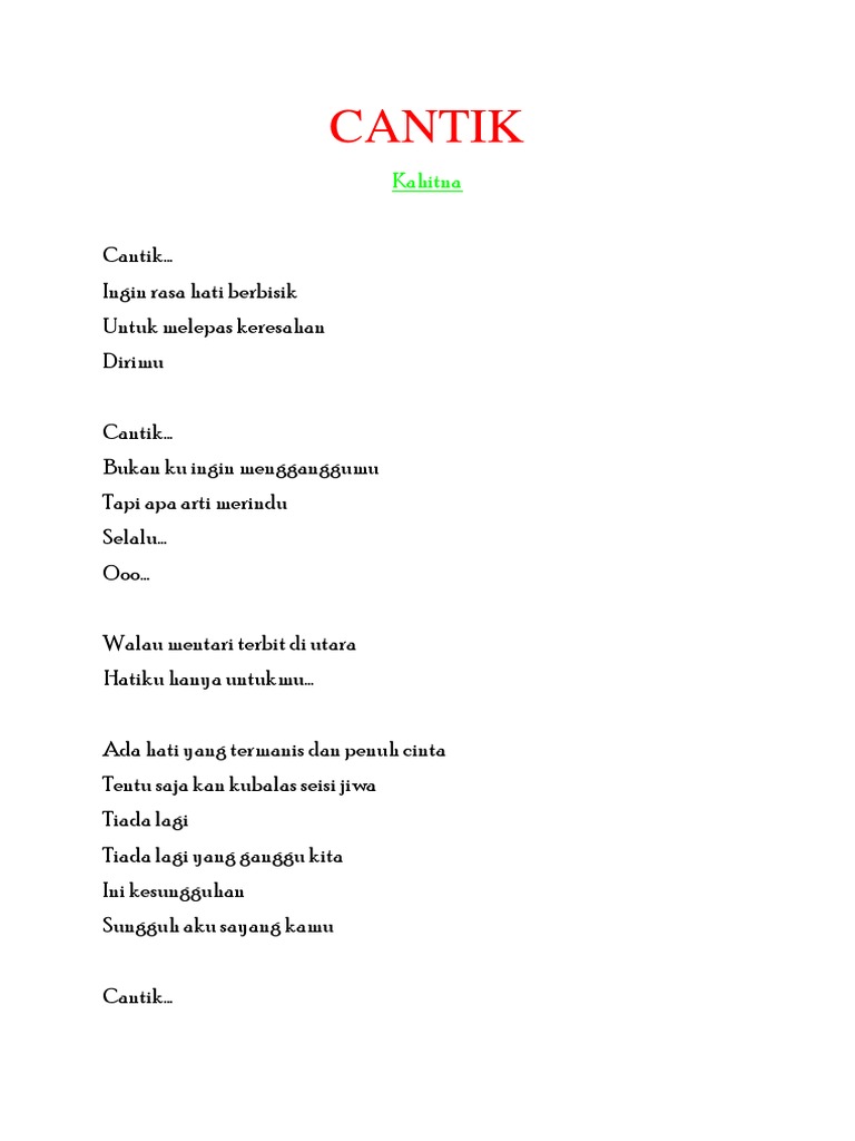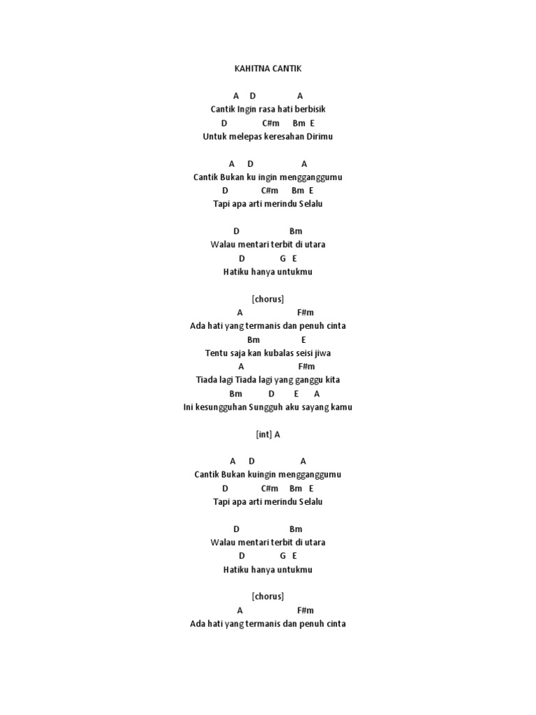 Chord Gitar Dan Lirik Lagu Cantik Kahitna Tribunmanado Co Id